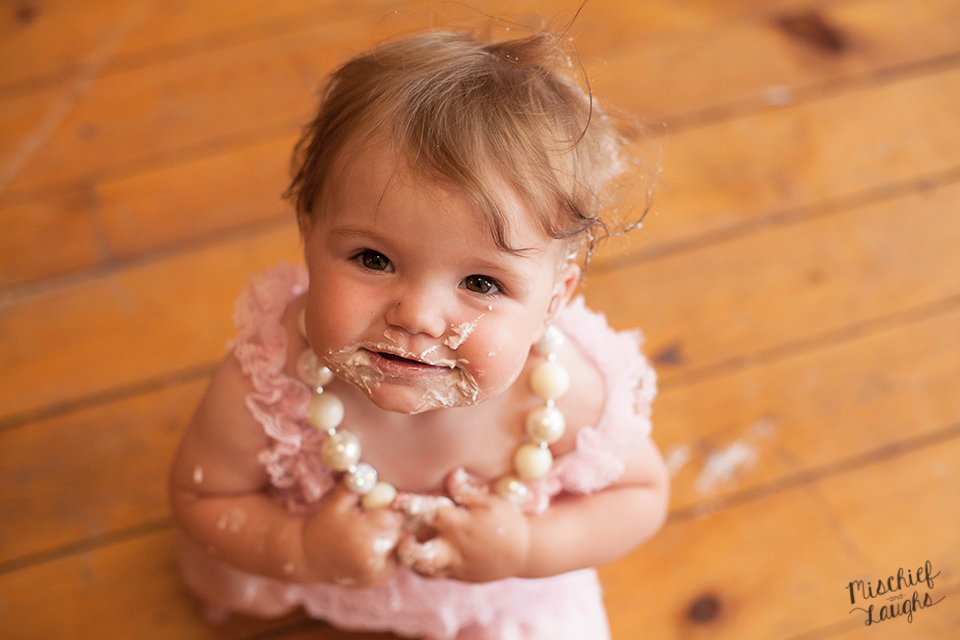first birthday photos in Canandaigua NY, vintage pink Cake smas