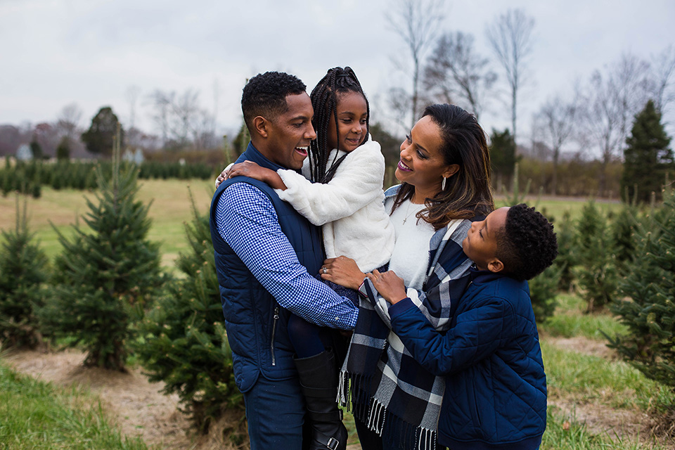 family pictures at a christmas tree farm, Cincinnati OH family photographer