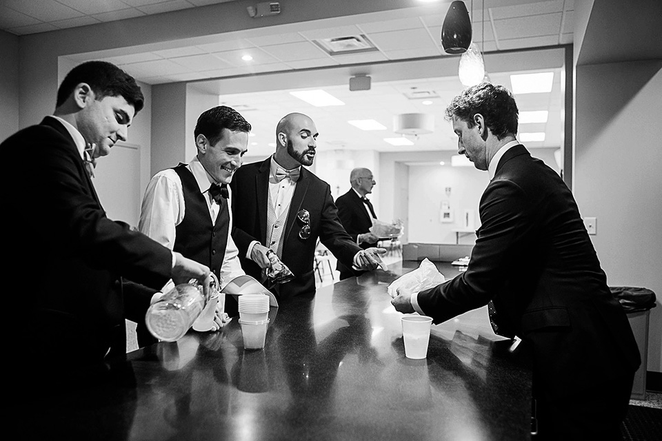 groom getting ready in the basement of a church in Cincinnati OH