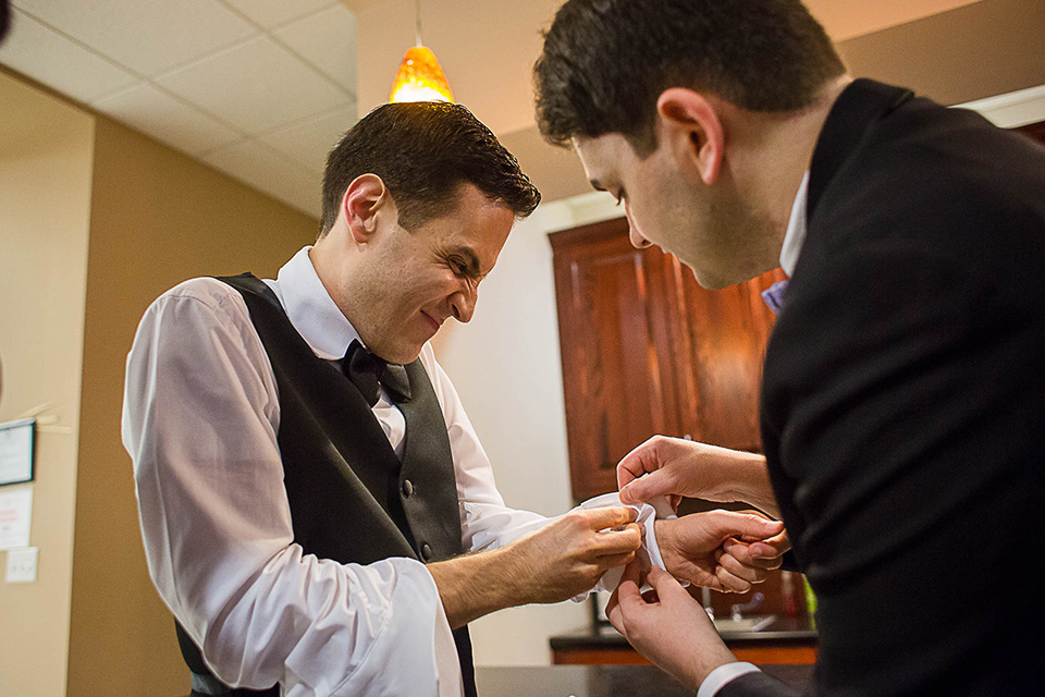 putting on cufflinks