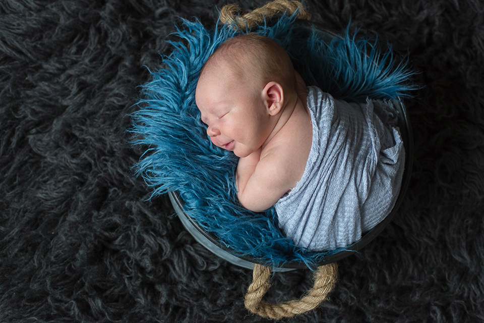 newborn portraits baby boy smiling