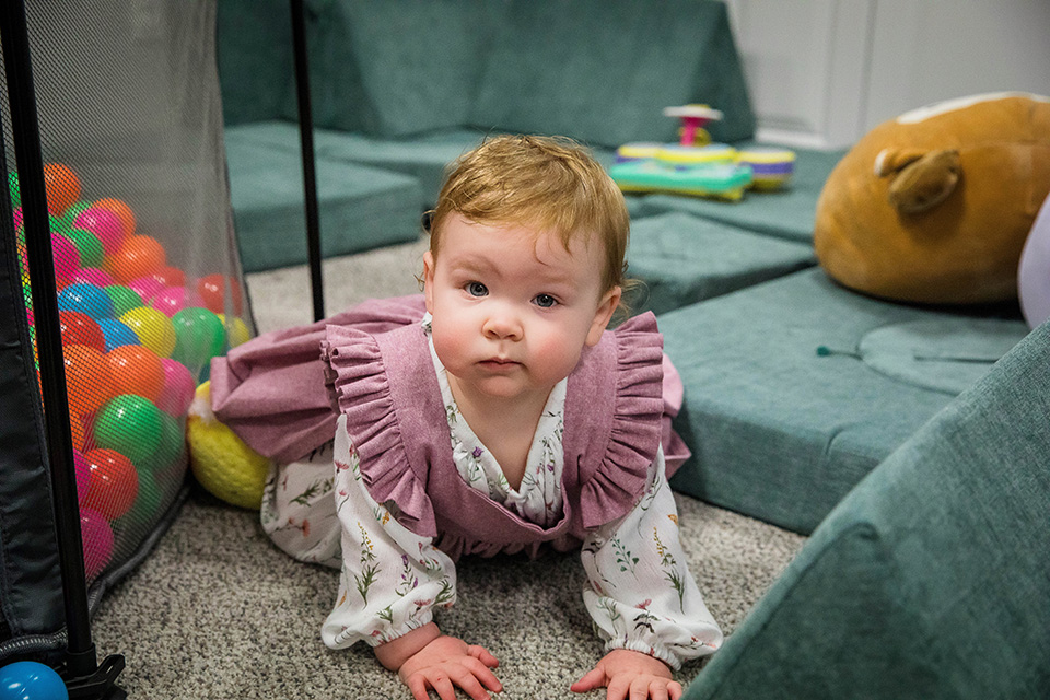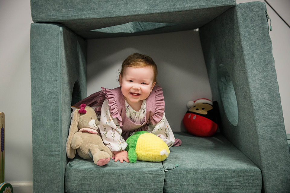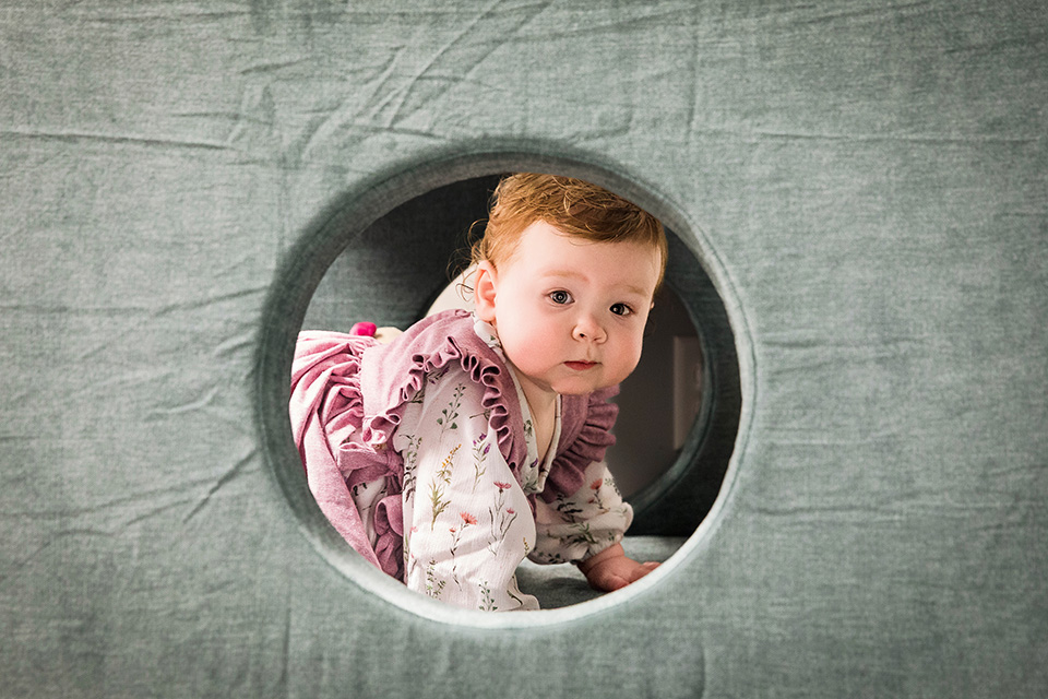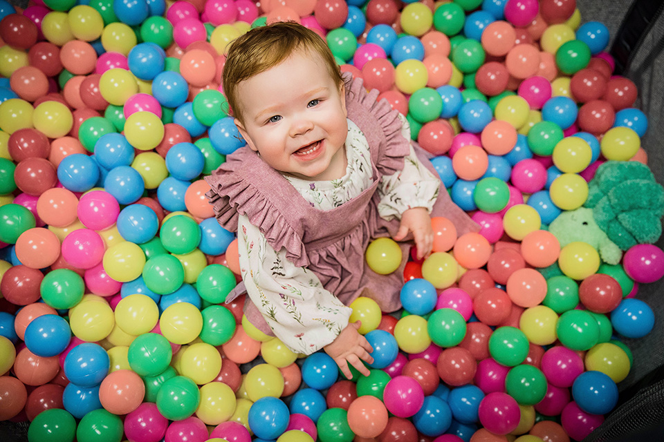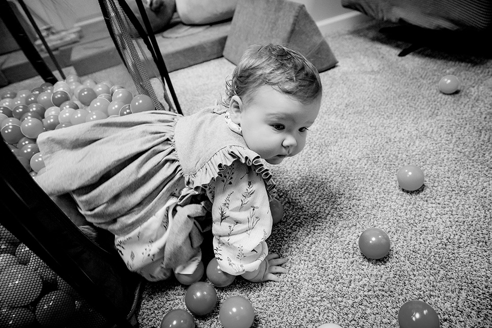 We started our session in her cozy downstairs playroom. This was her world, filled with all her favorite toys, and she wasted no time showing me just how much fun she has there! From the ball pit to her favorite corn stuffy, climbing around and clapping her hands with excitement, every little moment was a reminder of just how quickly this first year has flown by.
