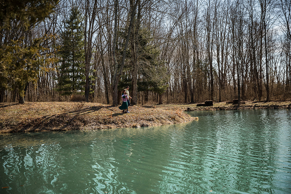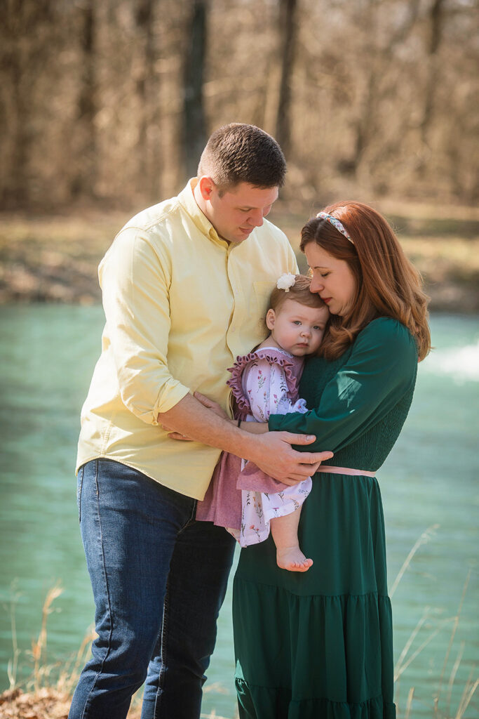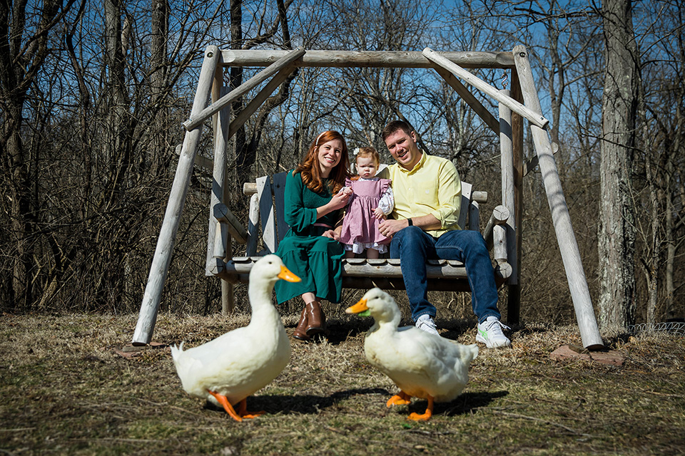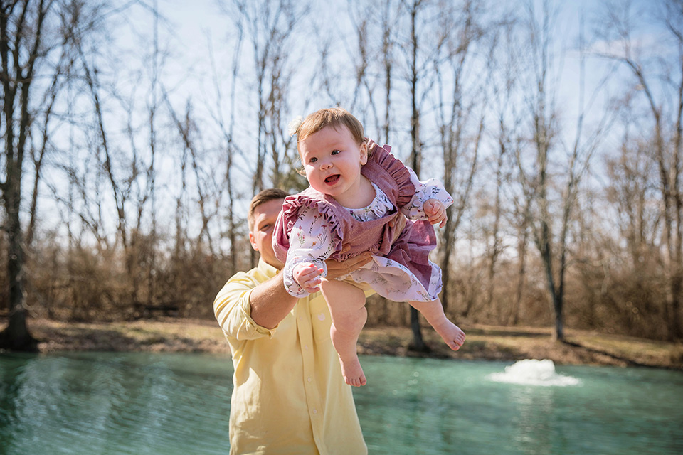After some playful moments indoors, we moved outside, where her mom and dad carried her through their yard and around the pond. The gentle breeze and soft sunlight made everything feel even more magical. As we wandered, we stopped to feed the ducks, their little webbed feet splashing in the water as they eagerly greeted us. The birthday girl watched in awe, her tiny fingers gripping a handful of food as she giggled at their antics.