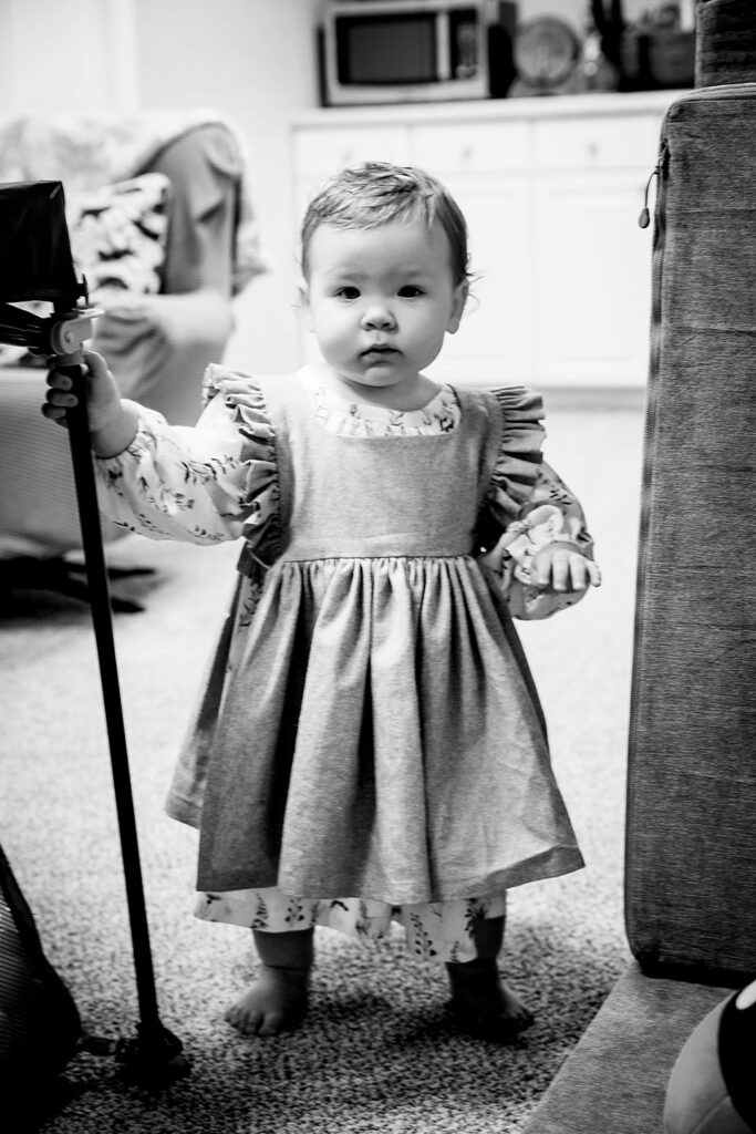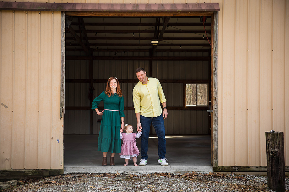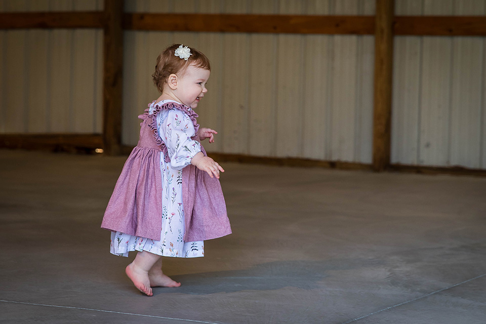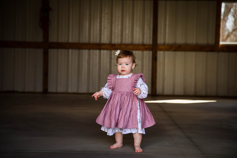 From there, we made our way to their barn, where she played and explored, her little hands reaching for everything new and exciting. There’s something so timeless about capturing moments in a family’s own space—it’s where they’ve laughed, loved, and watched their baby grow.