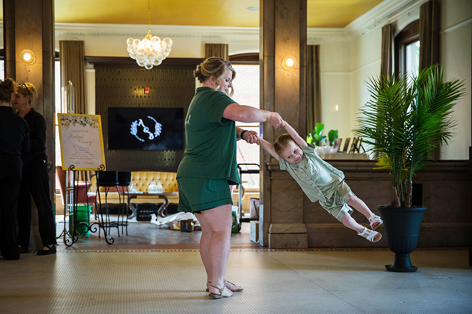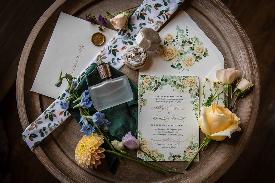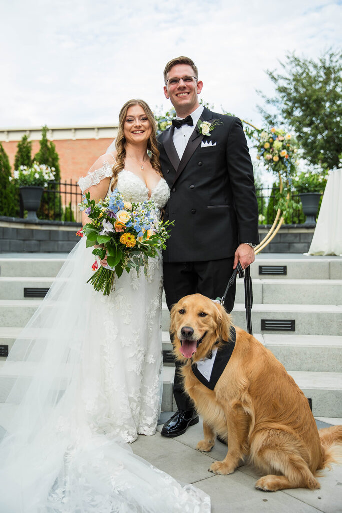 Weddings are unique, special celebrations with a heartfelt magic all their own. One of the things I love most about weddings is how each couple makes their day their very own. This couple did that by including their dog, Waffles in the ceremony and he was honestly the best boy with the biggest puppy energy! Their ceremony at Carnegie Hall in Newport KY was classic and elegant, but with a casual down to earth vibe that felt extremely genuine.