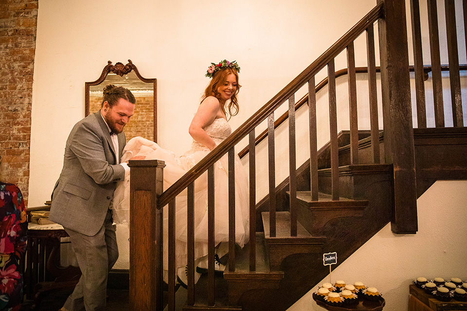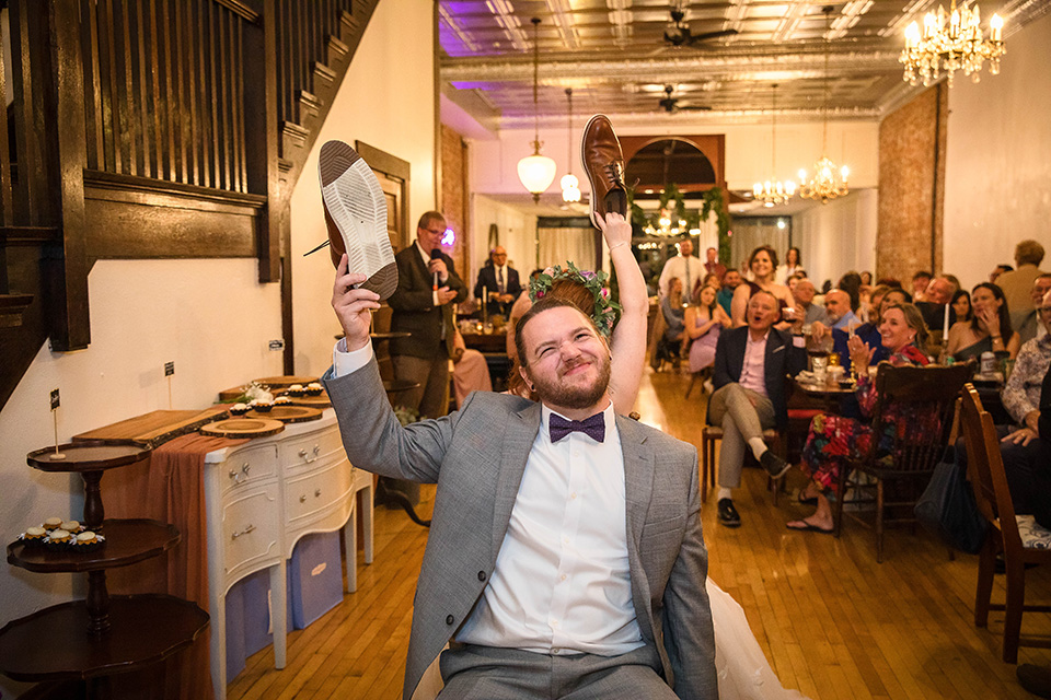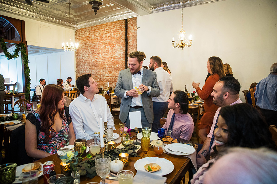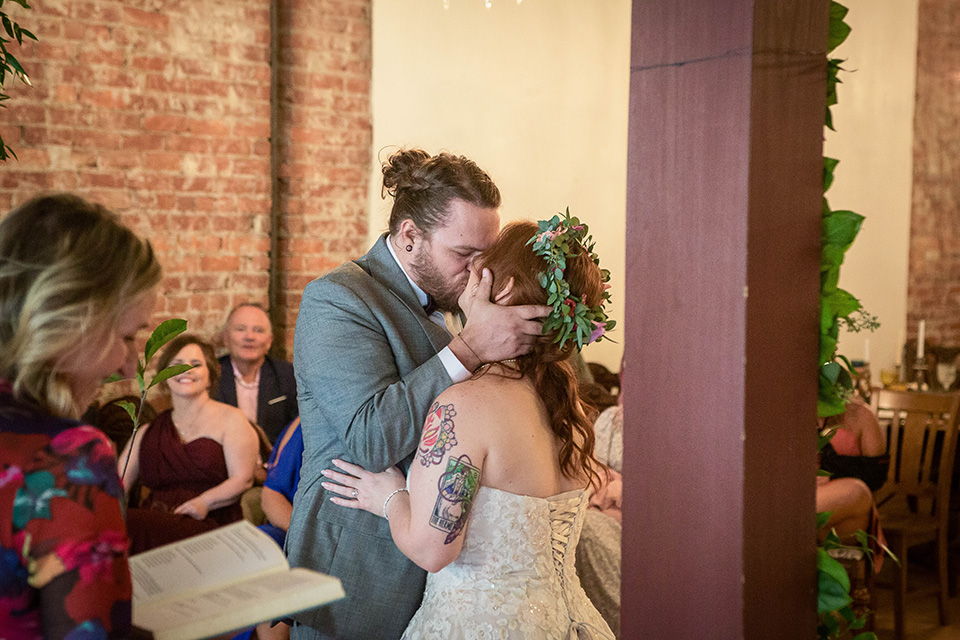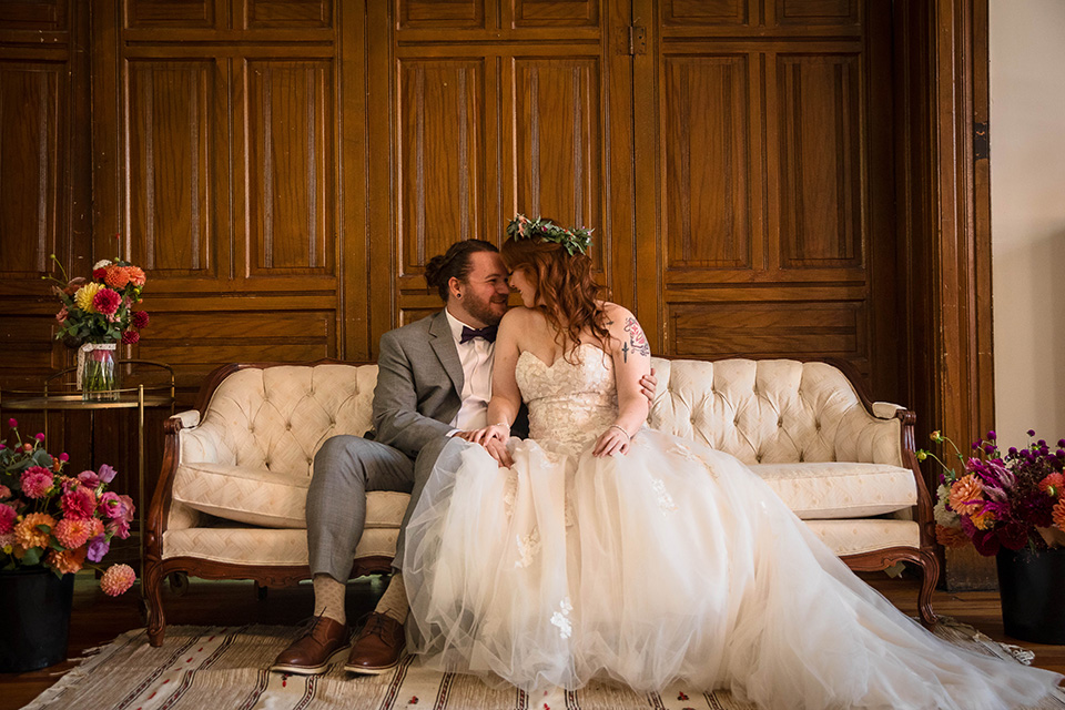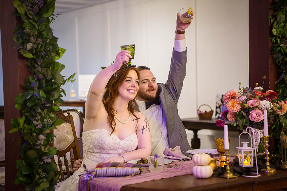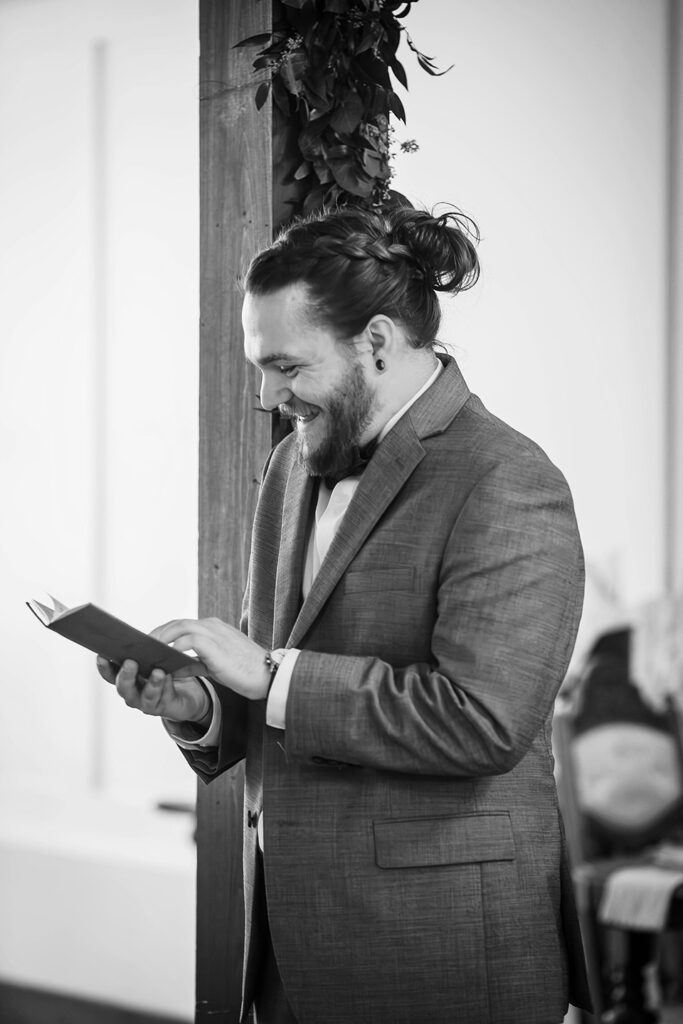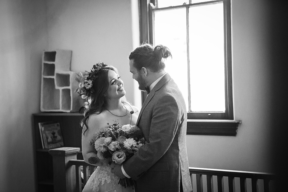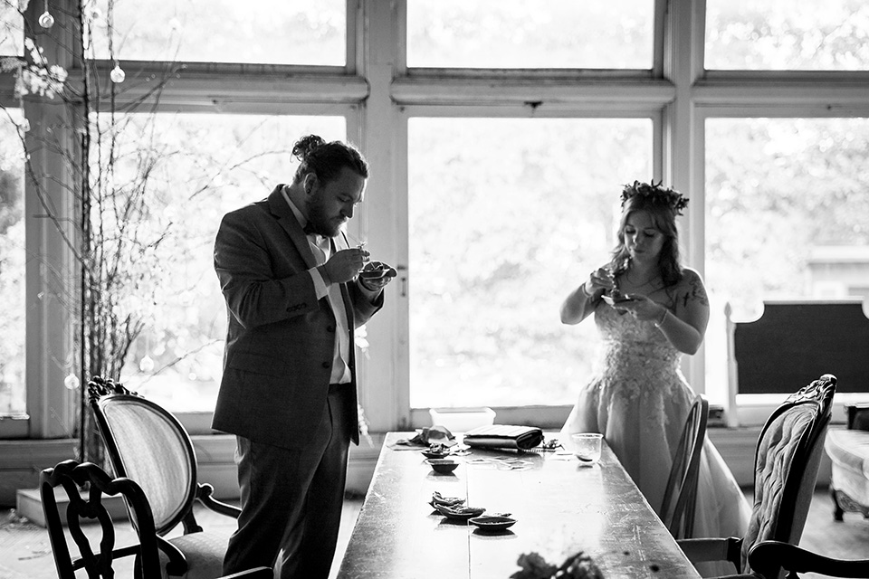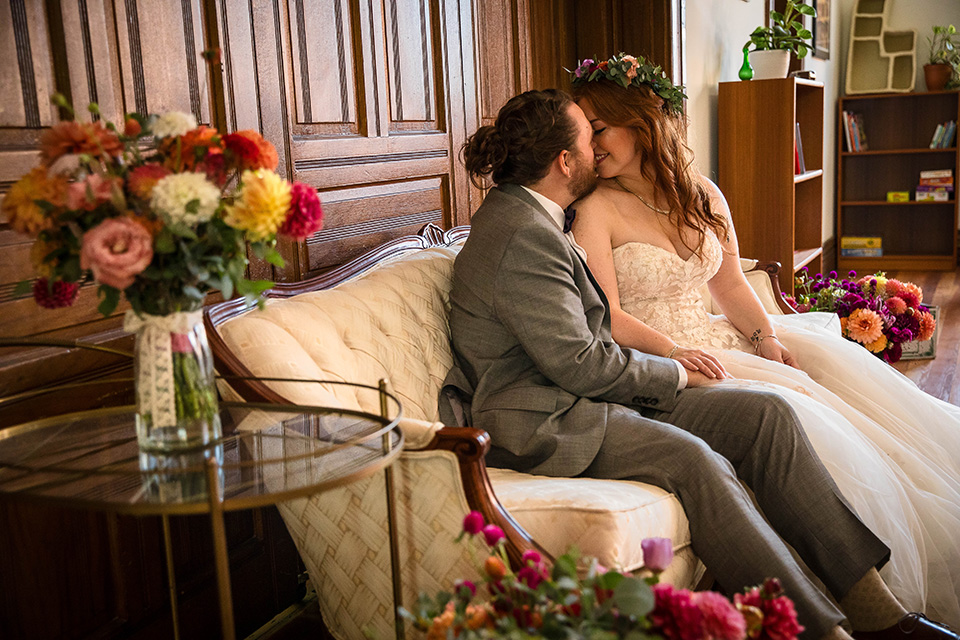 Instead of rushing straight into the reception, they took a few minutes to sit together, reflect, and enjoy the fact that they had just gotten married. We took a few beautiful editorial style pictures, I witnessed the signing of their marriage license (such a meaningful moment for me and my second photographer Caleb) and we had a few laughs and some snacks before they came back downstairs to rejoin the festivities for the first time as a married couple!