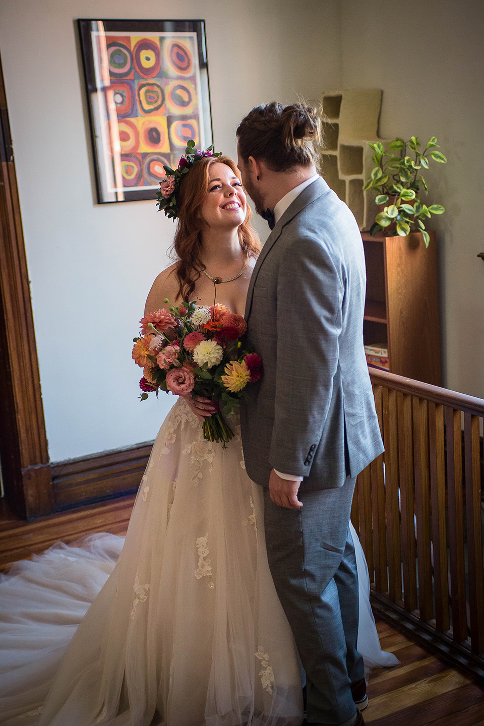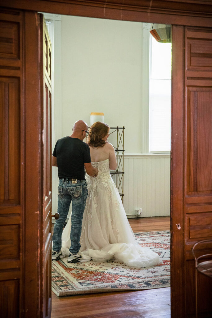 From a photography perspective, unique spaces like this add depth and texture to wedding photos. The light-filled rooms and historic details made the morning feel calm and cinematic, giving Abby and David time to prepare while enjoying quiet moments with their closest friends and family.