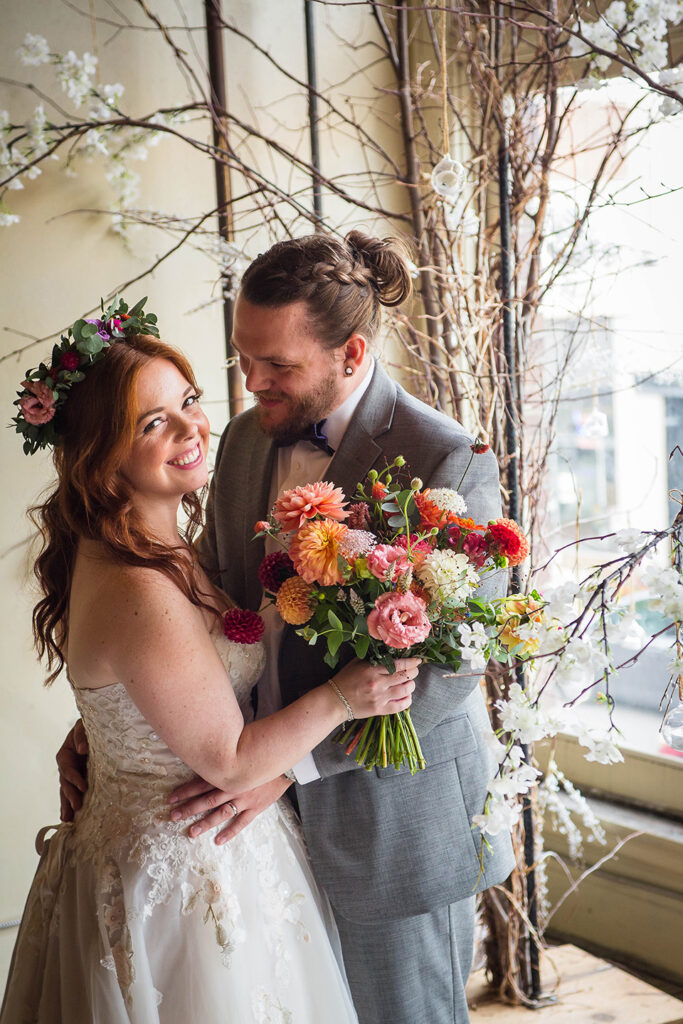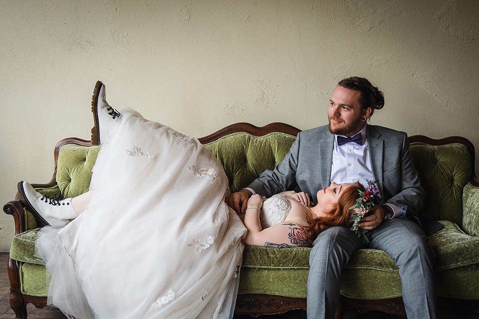 After the ceremony, Abby and David took a short break upstairs at the venue to relax together. These intentional pauses during a wedding day are often overlooked but incredibly meaningful.