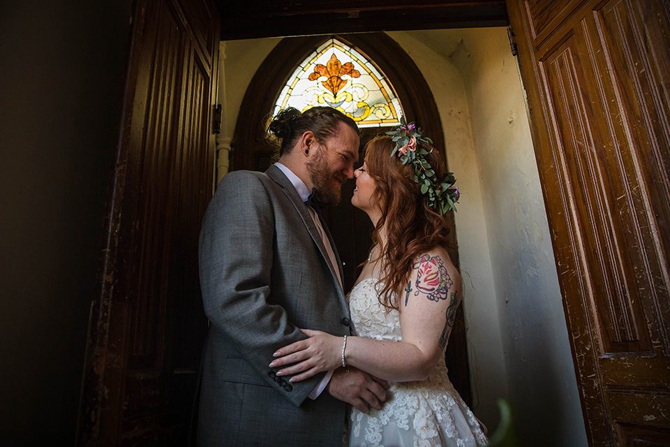 The day began at The Church Airbnb, a beautifully restored historic building that served as the couple’s getting-ready space. The character of the space with the tall ceilings and historic architecture, and of course the soft natural light coming in through the old arched windows created a relaxed and elegant environment for the start of the day. So much better than a crowded hotel room!
