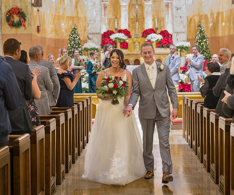 There’s something undeniably meaningful about a Christmas wedding inside a historic Catholic church. The quiet reverence, the glow of candlelight and poinsettias lining the altar, and of course the traditions that have been passed down …